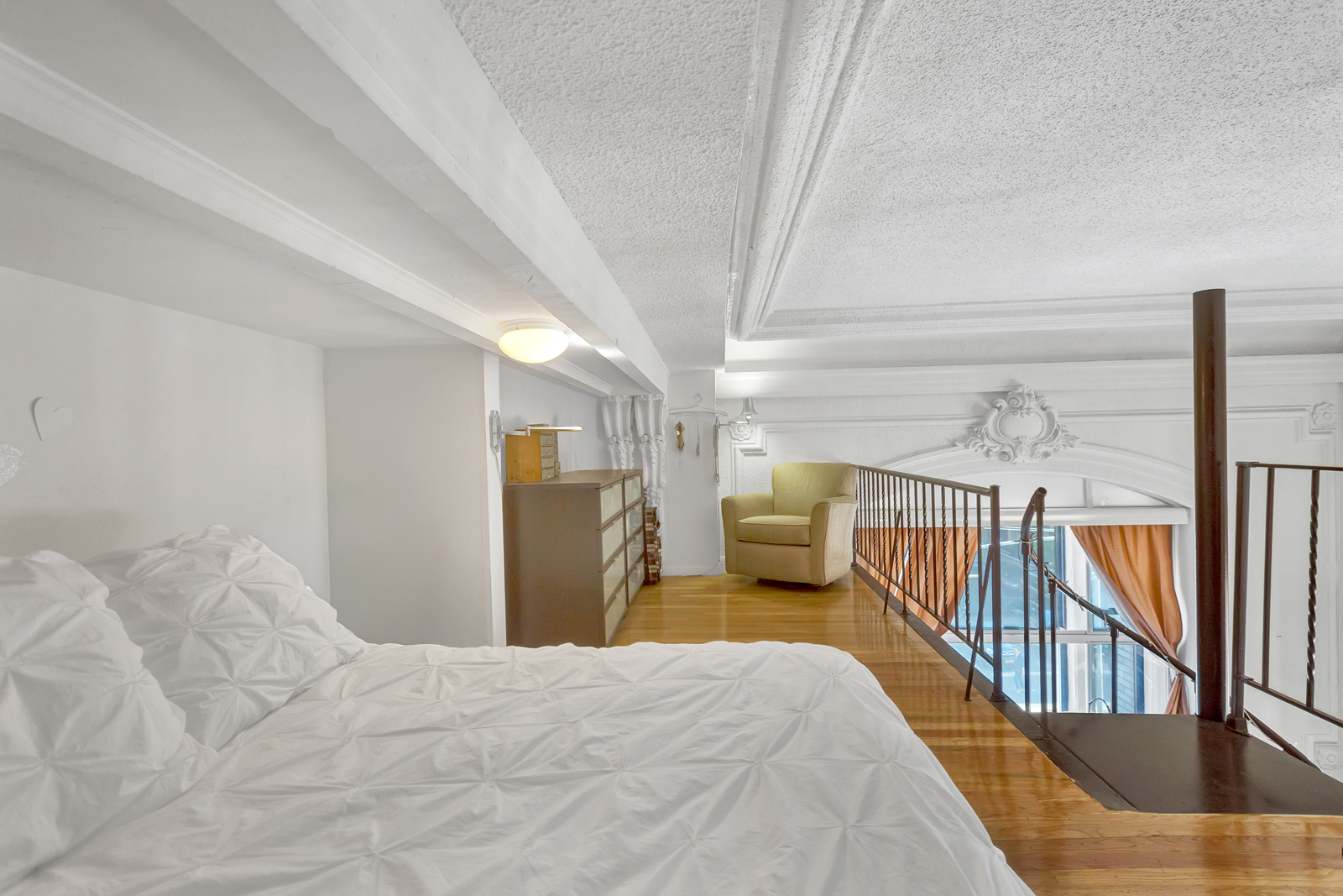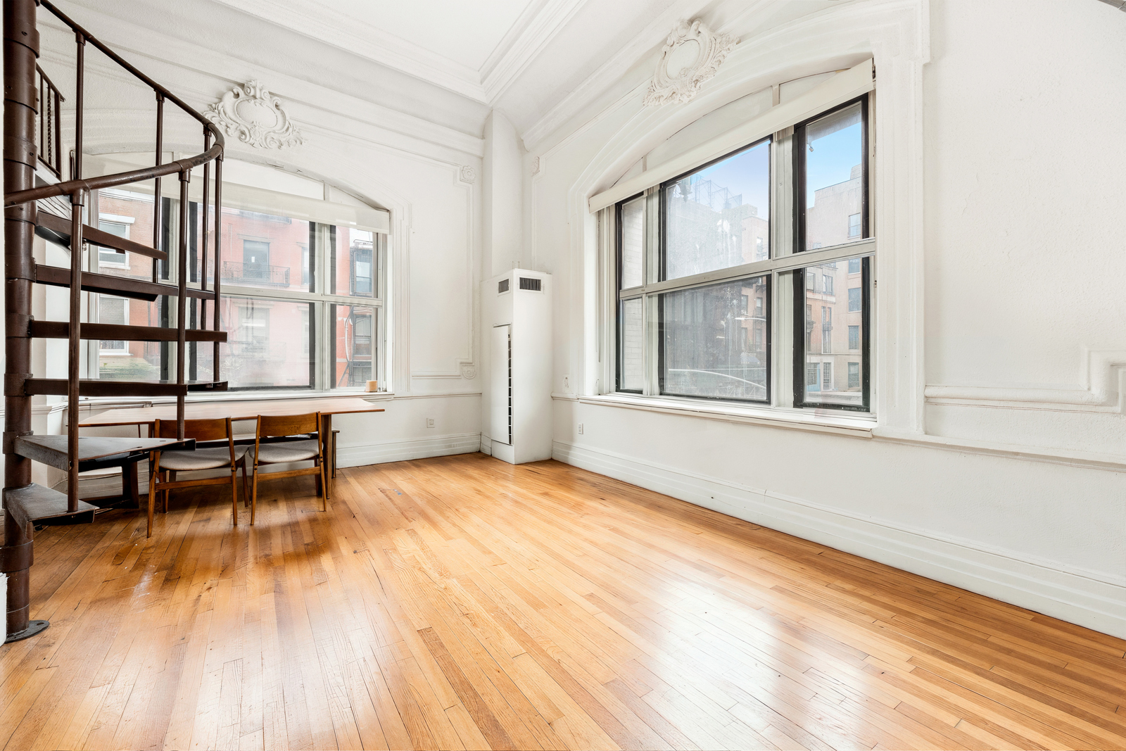 Located in the heart of Greenwich Village, this unique corner duplex features soaring 15-foot ceilings, intricate moldings, hardwood floors, and a sleep loft that can accommodate queen-sized furniture. This unit is not located on the ground floor.