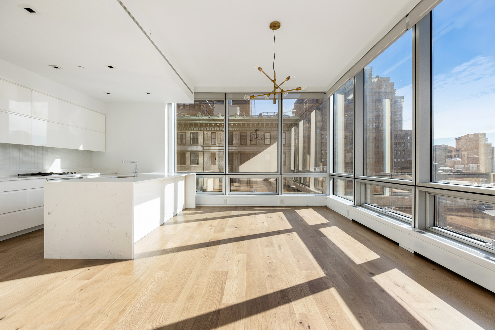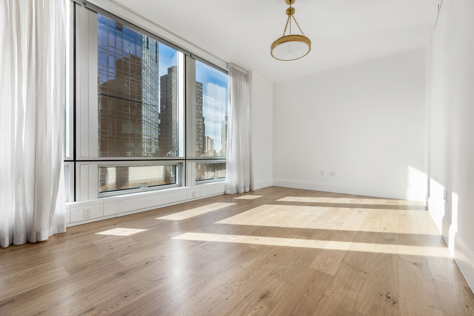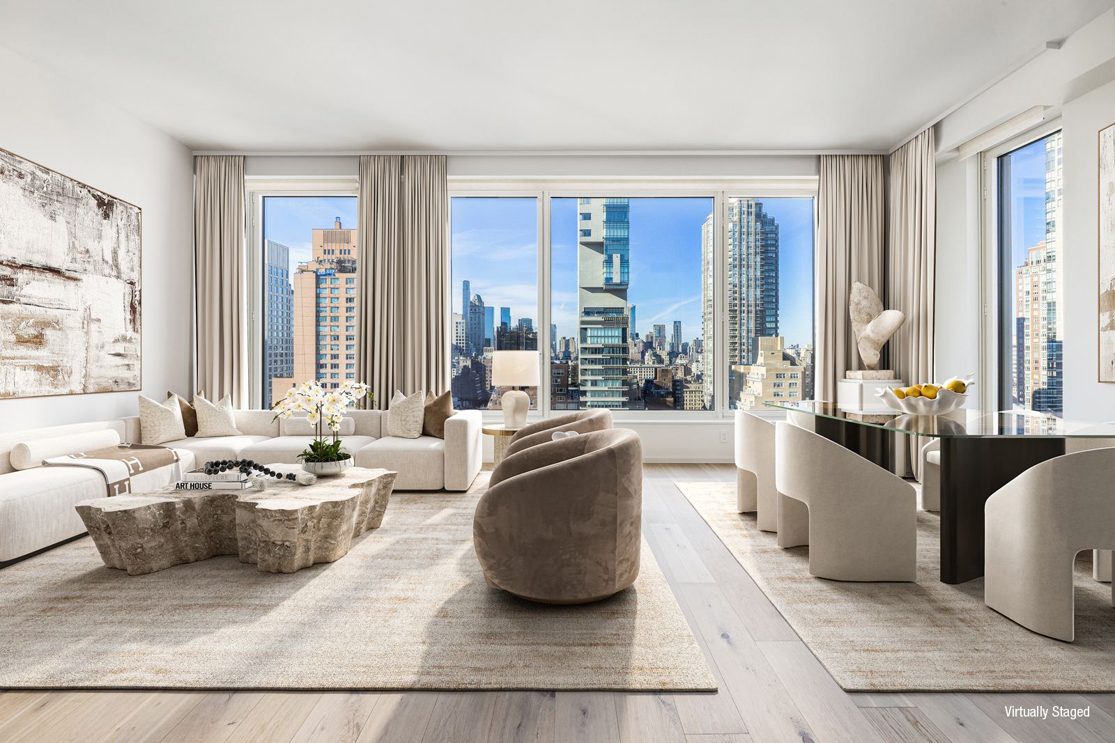 Experience 1,479 square feet of impeccably designed luxury living in this sun-flooded and spacious corner apartment, wrapped in floor-to-ceiling windows with bright south and east exposures. This exceptional home offers a split-bedroom layout with two generous bedrooms, each with its own en-suite bathroom, plus an elegant powder room—perfectly balancing comfort, privacy, and sophistication. Newly upgraded with brand-new, eight-inch-wide plank oak flooring throughout, soaring 11-foot ceilings, and central air conditioning, the residence provides an effortless sense of volume, light, and year-round comfort.