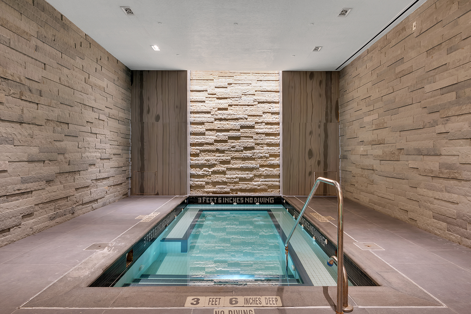 Residents enjoy exclusive access to the 172 Spa and gym, featuring a 67-foot saltwater lap pool, Jacuzzi, yoga room, and steam room—ideal for rejuvenation and relaxation. The 172 Lounge provides an elegant setting for entertaining, from billiards with friends to intimate gatherings.