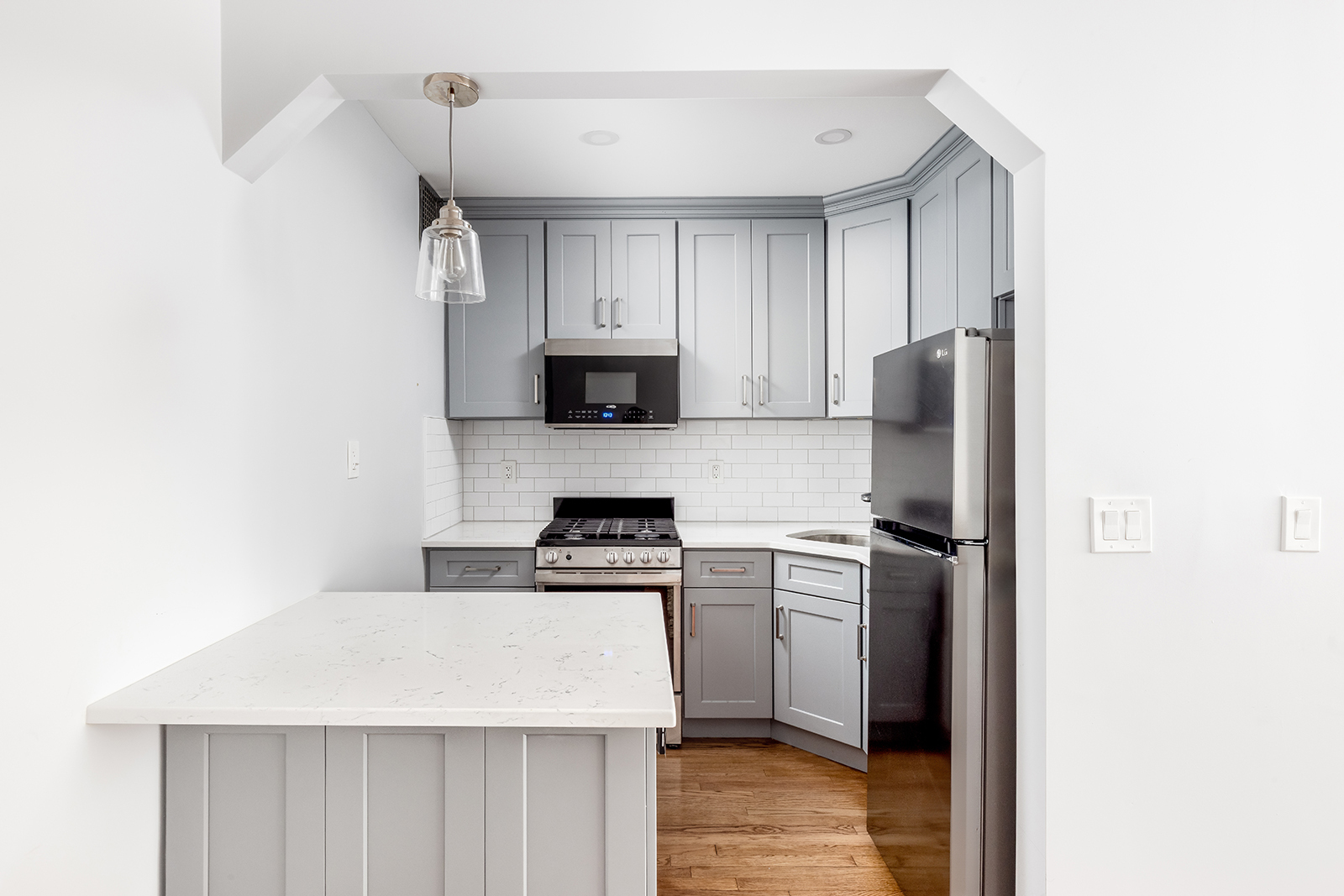 The kitchen offers stone counters, a custom ceramic tile backsplash, quality cabinets, and is equipped with a full line of stainless steel appliances. The generous living area enjoys the view of the private garden and amazing natural light. It is cleverly reconfigured to allow for a double exposure and easy access to the fully renovated bath.