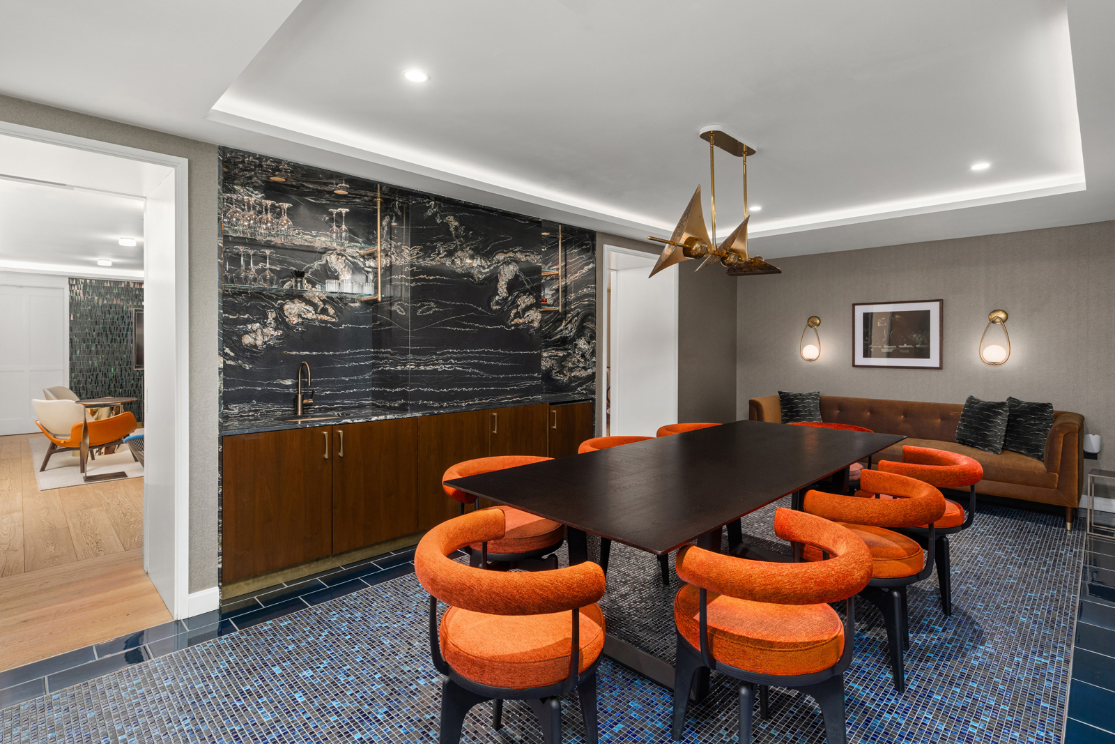 - Over 4,000-square-foot garden-level amenity suite featuring indoor and outdoor spaces, including Great Room with work nooks, Club Room for dining and entertaining, landscaped courtyard, and “The Cottage” children’s playroom with porch and secret garden.