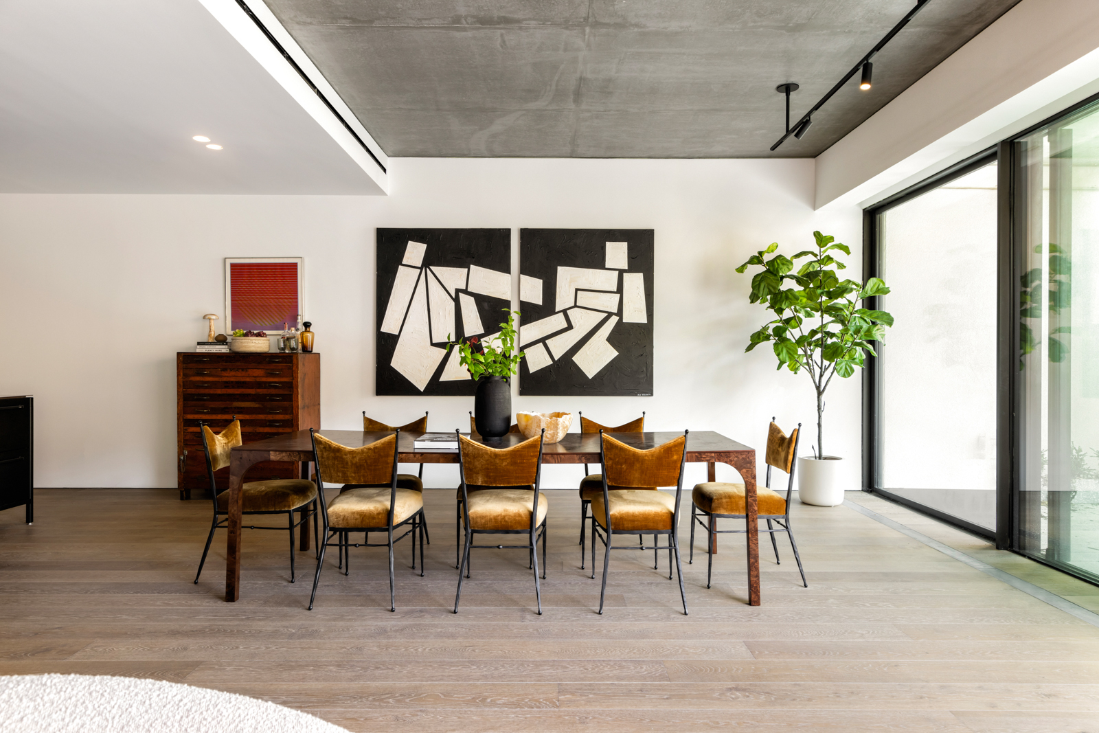 Throughout, the home is defined by quiet, considered details: wide-plank smoked oak flooring, radiant heat underfoot, integrated FLOS lighting, multi-zoned Daikin HVAC, and expansive PanoramAH! windows that enhance both light and scale.