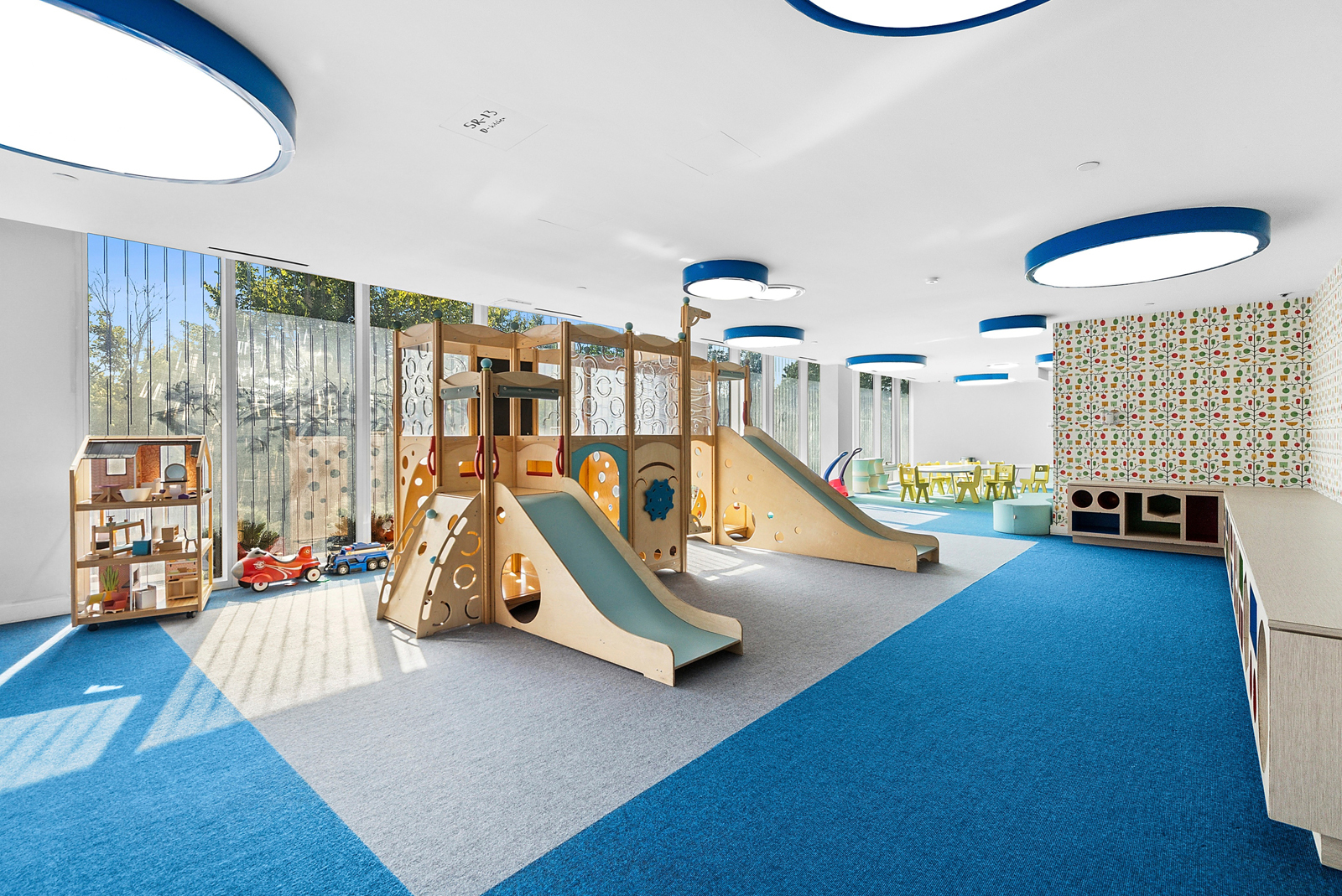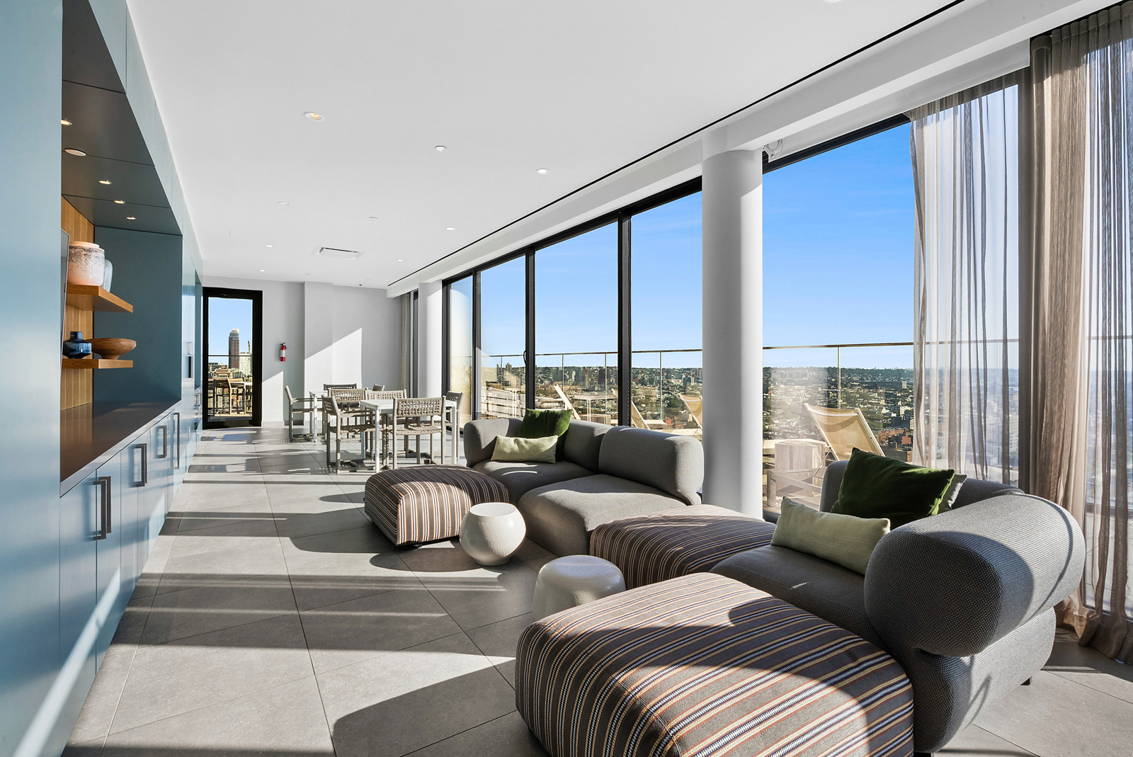 Quay Tower offers a full lifestyle experience: rooftop terraces with firepits, a fitness center, music room, children’s playroom, pet wash, and 24-hour concierge.