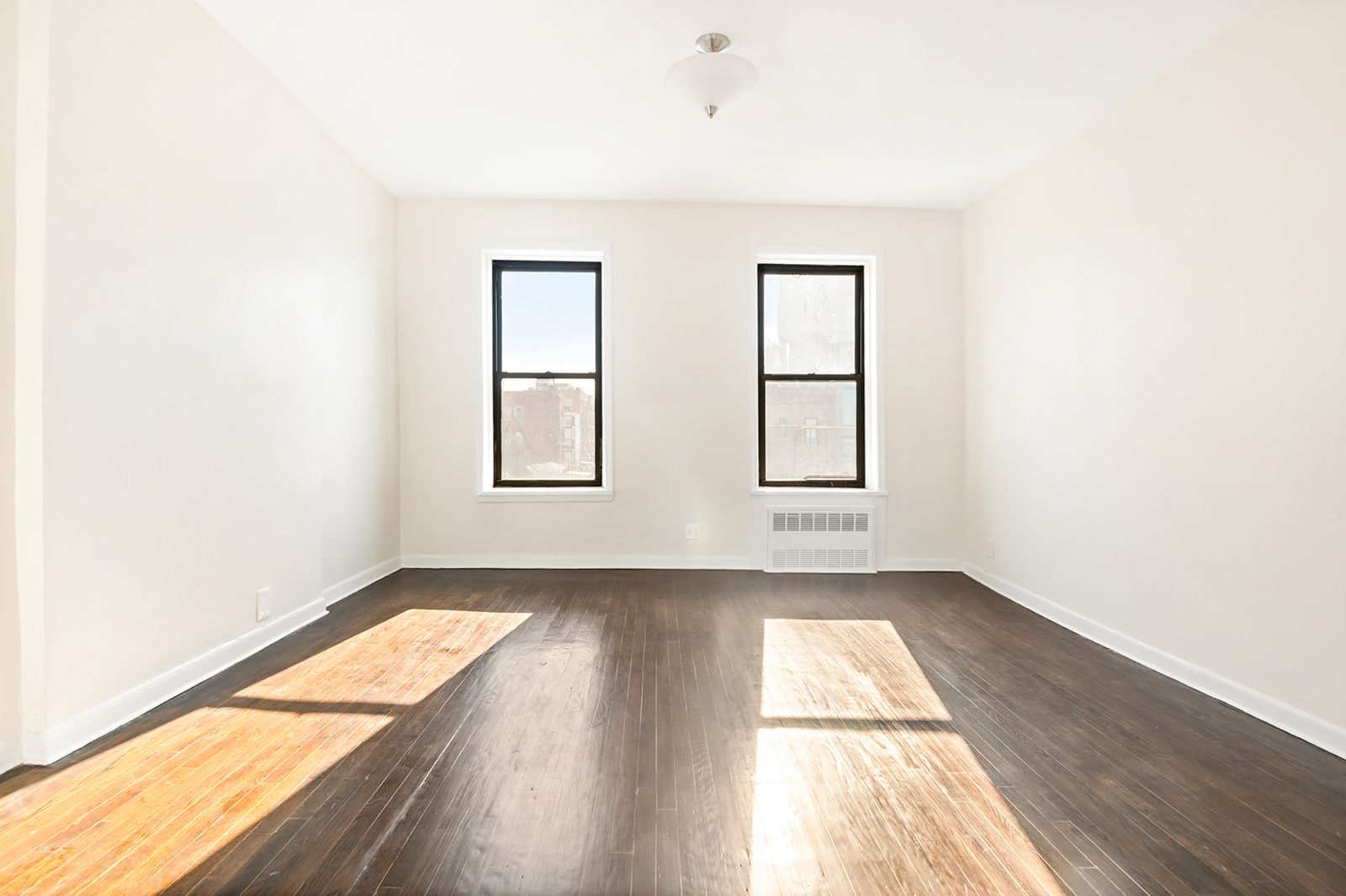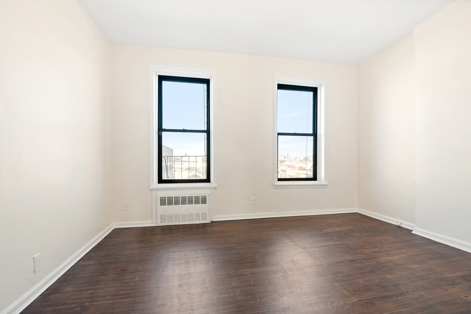 The large bedroom features two northwest-facing windows that provide a great view of Lower Manhattan and the Brooklyn-Queens Expressway. There are also two full-size closets with interior lights, and the bedroom has a door to the building hallway, which makes move-in a breeze.