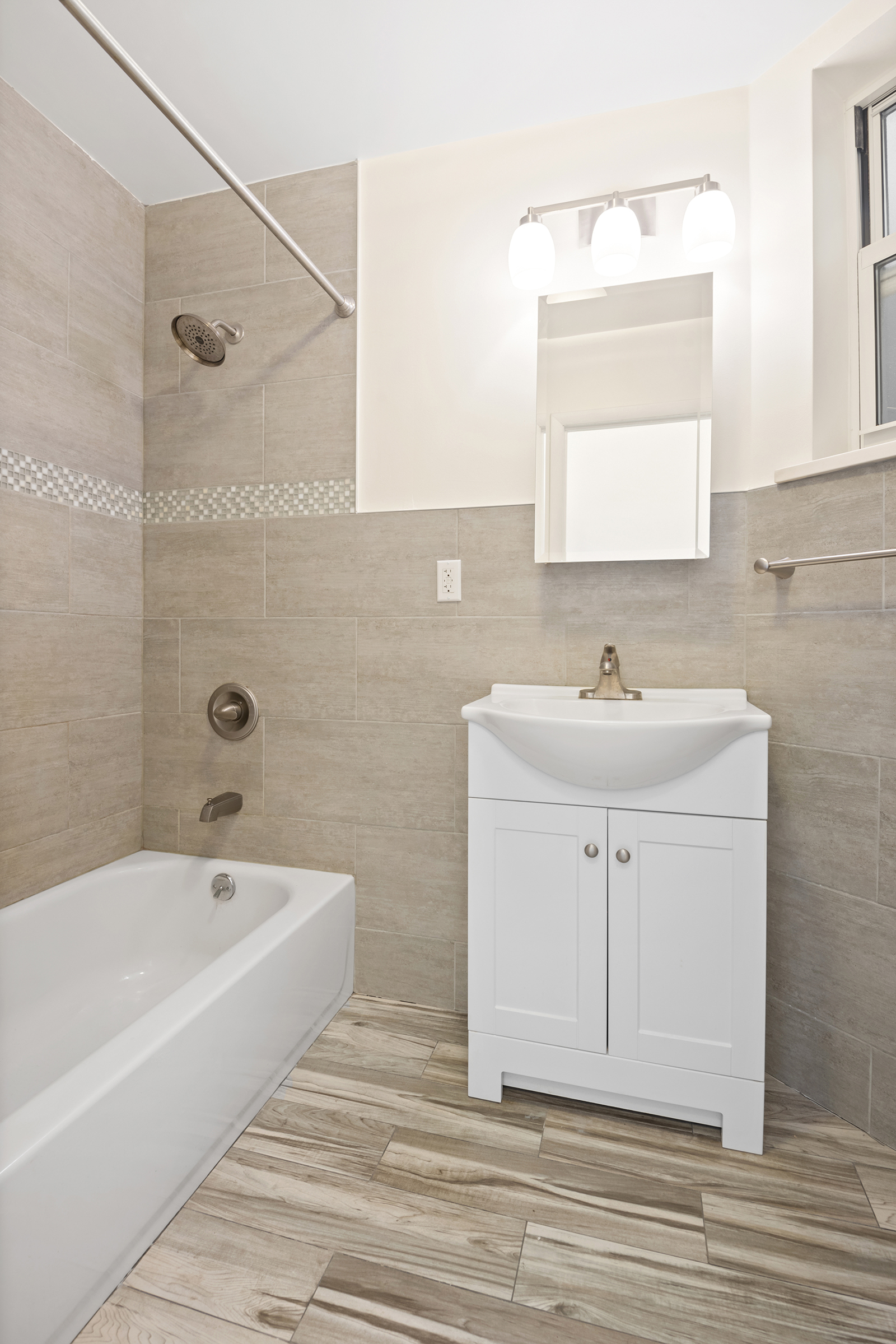 When the bedroom door is open, you have a tremendous sense of space, light & air. In the hallway there is a large linen closet and the renovated bathroom is also windowed for ventilation.