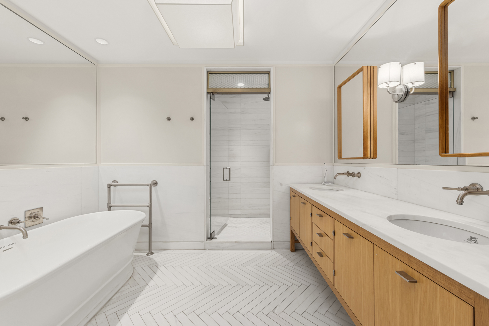 -Primary suite: Huge walk-in closet; spa-like bath with double vanity, soaking tub, separate toilet, steam shower—all marble throughout