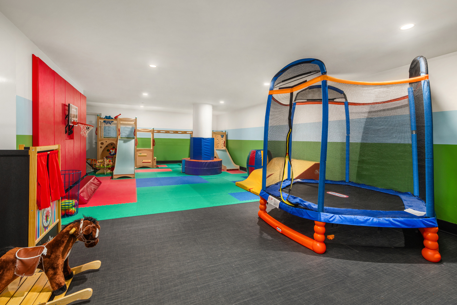 -Fitness center opening to a landscaped garden retreat; children's playroom and library for refined living