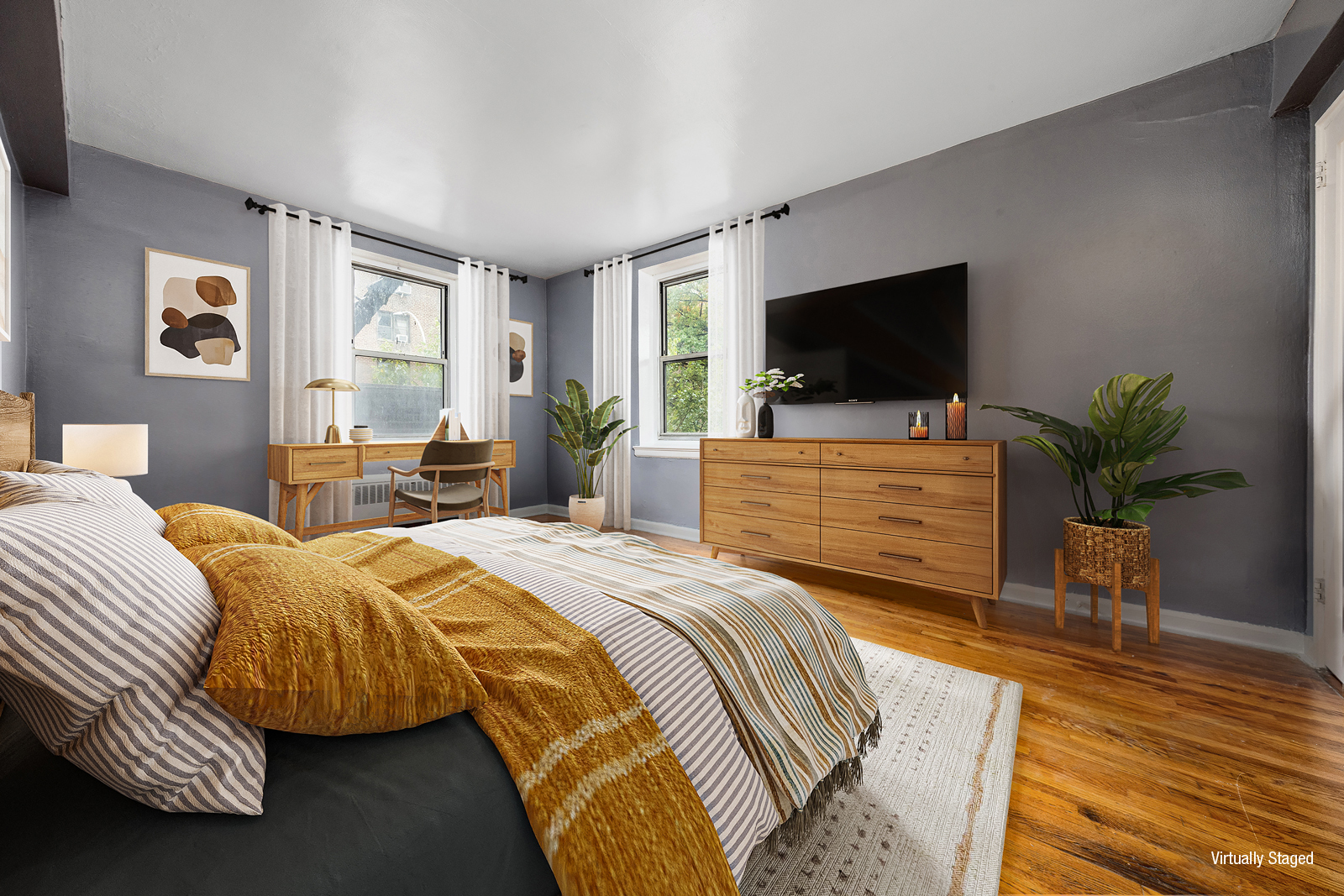 The main living room has ample windows and is adjoined by the foyer, which can double as a dining room. Spanning two exposures, the bedroom offers ample space for a king-size bed and an office/seating area.